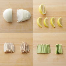 「たまねぎの薄切り」や「きゅうりのせん切り」、「だいこんの細切り」など、ふだんよく使う野菜も、切り方で食感や見た目が少しずつ変わります。いつもの野菜の切り方を、改めて見直してみませんか。