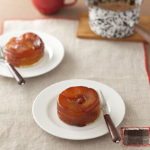 りんごをぎっしり詰めた型に、タルト生地をかぶせて焼くフランスのお菓子「タルトタタン」。りんごがカラメルをたっぷり吸って、あめ色においしく焼きあがります。今回はココット型を使って、ミニサイズに。大きなタルトより、ぐっと手軽に作れます。茶葉を濃く煮出したロイヤルミルクティーをおともに、旬のりんごを味わってください。