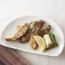 「さばの竜田揚げ」は、外はカリッと香ばしく、中はうま味がじわり。レモンをしぼって、めしあがれ。