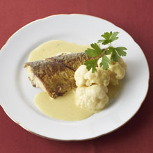 クリームが生ぐさみをカバーする「さばのソテー カレークリームソース風味」。カレーの風味が上品です。