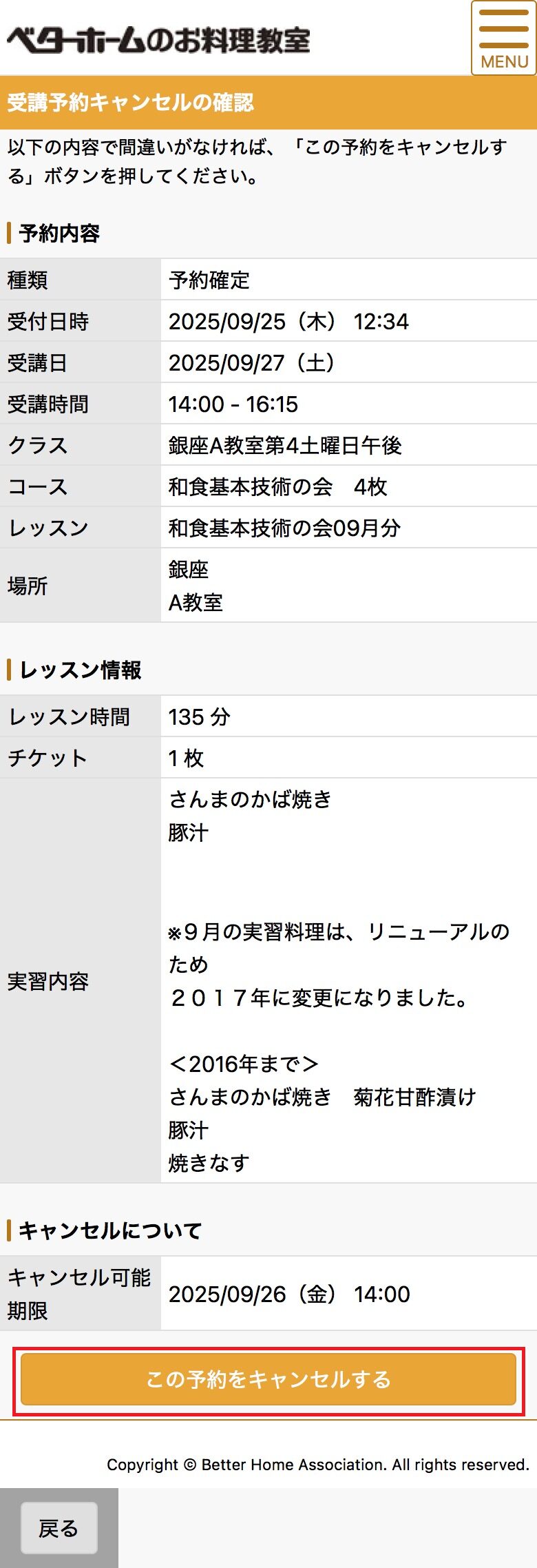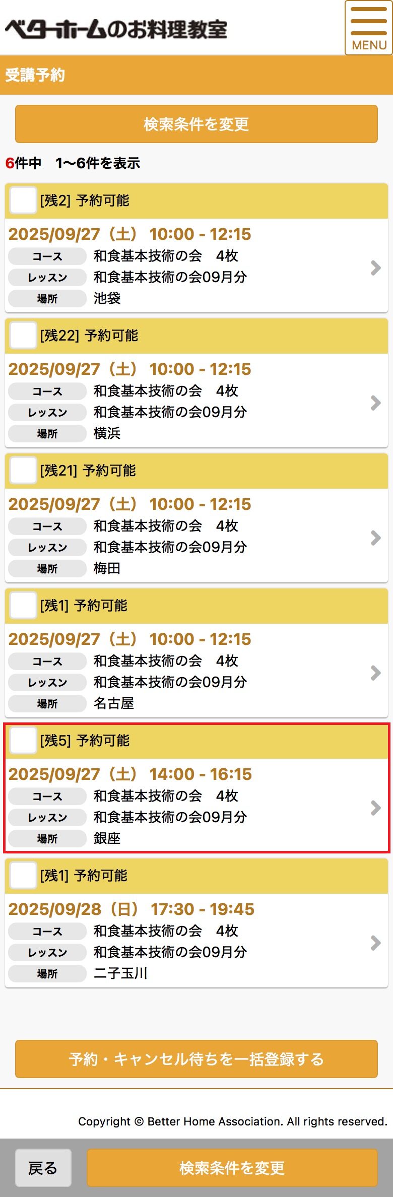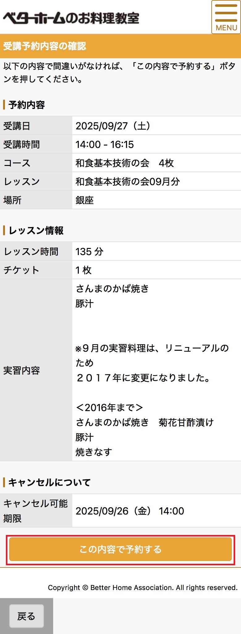 ベターホームでご入金を確認させていただいた後に、ご予約いただけるようになります。