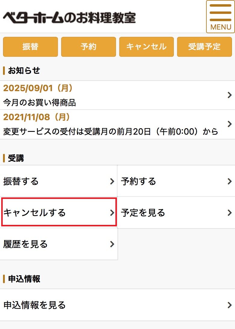 ・マイページかお電話でキャンセルをしてください。