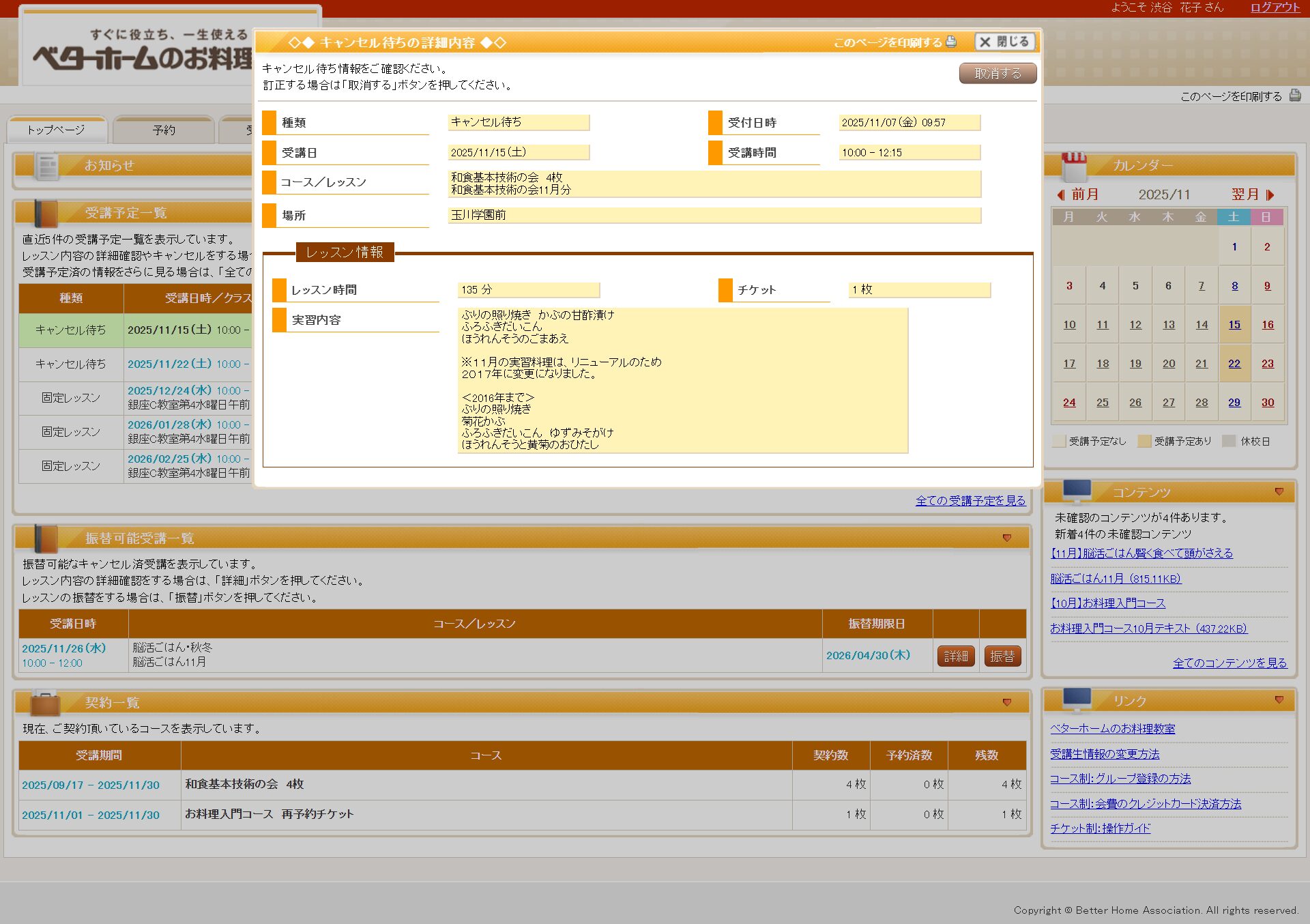 予約結果は、トップページの「受講予定一覧」で確認できます。
