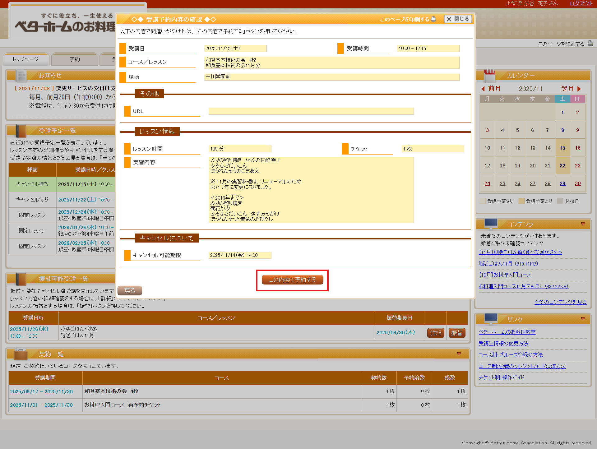 5.予約内容を確認し、「この内容で予約する」ボタンをクリックします。