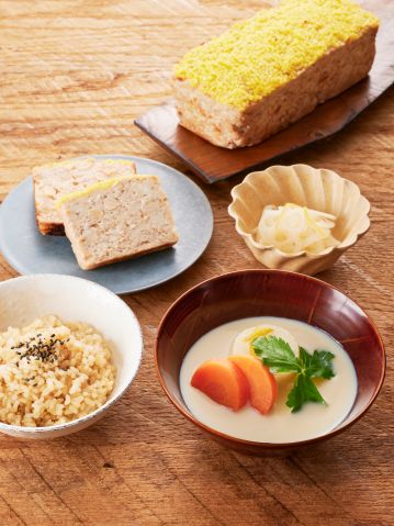 和風ミートローフ/長いもの豆乳白みそ椀/れんこんの柚香あえ/玄米ごはん