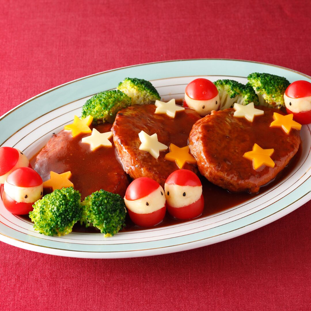 〈[産直便]宮崎県産黒毛和牛と黒豚のハンバーグ〉のクリスマスアレンジレシピ