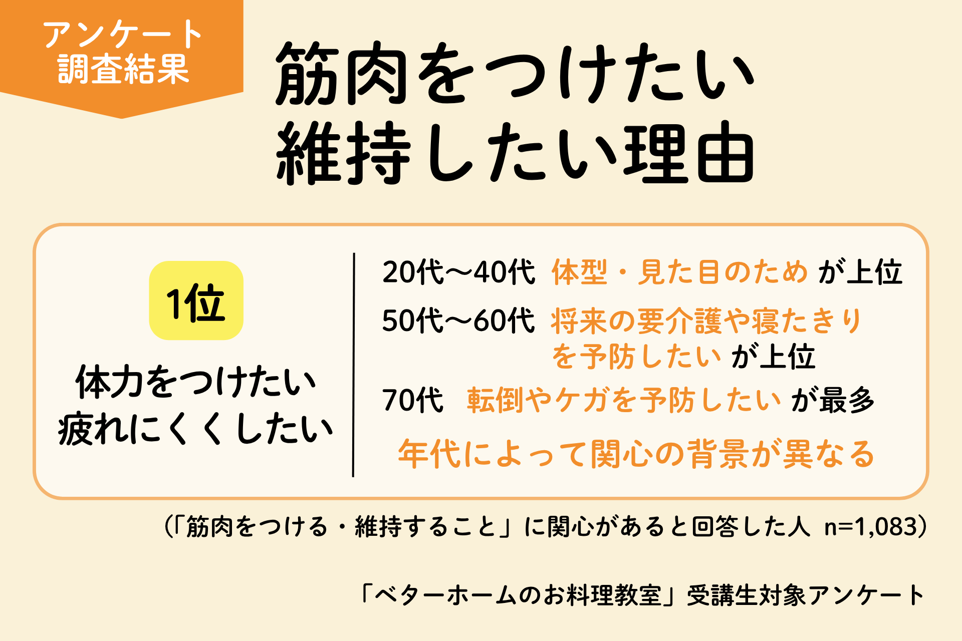 “筋活と食”への関心の高さが明らかに~ベターホーム受講生アンケートから見えてきた、今知りたいこと~