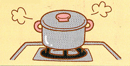 ●余熱調理 加熱後火を消し、鍋をコンロに置いたまま、コンロと鍋の余熱を利用して仕上げる方法