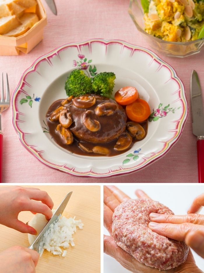人気のメニュー、ハンバーグ。コクのあるドミグラスソースで煮込み、ふっくら、ジューシーに仕上げましょう。