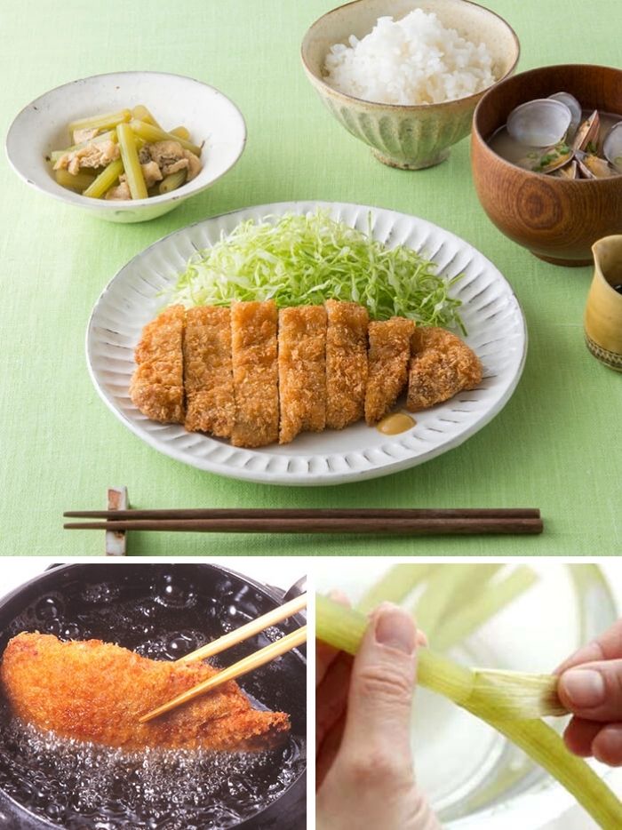 お店顔負けのおいしいとんかつと、キャベツのせん切りは、ベストパートナー。春の食卓にのせたい、ふきとあさりを献立に。