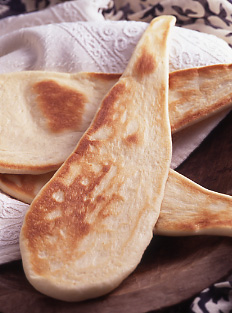 ぬるま湯を2〜3回に分けて加え、ヨーグルトも混ぜます。粉に水分が全部吸収されたらこね始めます。全体がまとまったらサラダ油を加えてさらにこね、なめらかできめ細かい生地にします。ひとつに丸め、暖かいところに20〜30分おきます。 |